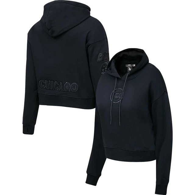 Women's Pro Standard Chicago Cubs Triple Black Cropped Pullover Hoodie