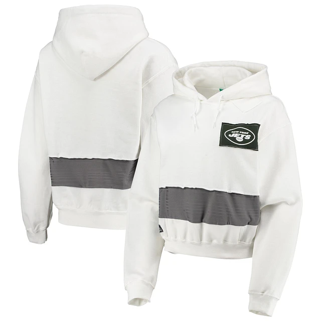 Women's Refried Apparel White New York Jets Sustainable Crop Dolman Pullover Hoodie