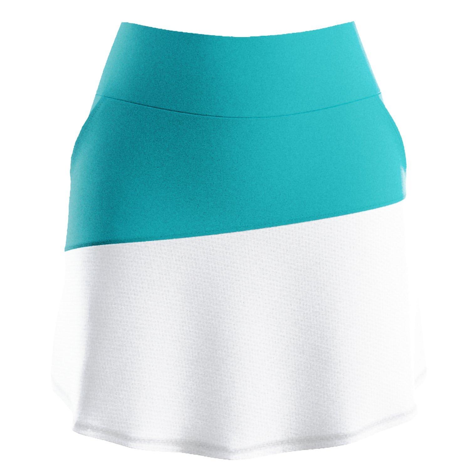 Add a feminine touch to your golf style with this teal and white Serenity golf skort from SwingDish. The asymetrical ruffle adds the perfect flare. Pair with your favorite sporty top from our Love collection to complete your look.