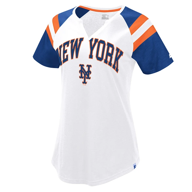 Women's Starter White/Royal New York Mets Game On Notch Neck Raglan T-Shirt