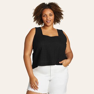Made of lightweight, breathable textured fabric, this breezy tank is perfect for all your warm-weather adventures. The cropped silhouette pairs perfectly with shorts, jeans, skirts, and more. Models shown are 5'9" to 5'11" tall, wearing size S/4 or L/12.