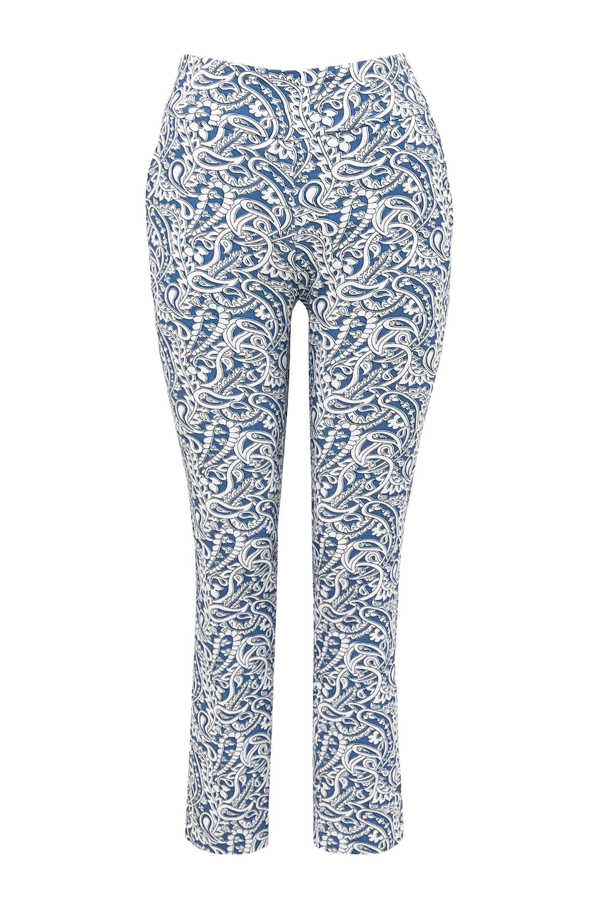 Chic with a vintage-inspired charm, the paisley pant exudes a sweet sophistication with a distinguished textural edge. Coastal hues evoke a summer state of mind, playing off the sharp tailoring with an upscale allure that's accessible and highly versatile. It's elegant yet easy to wear, transitioning seamlessly from morning rounds to midday meetings.