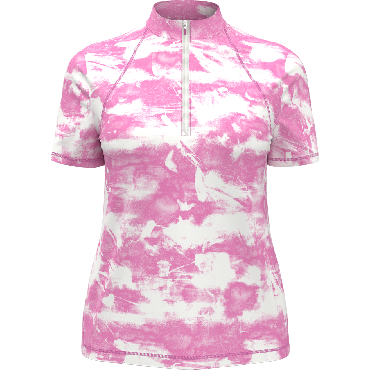 Instantly update your seasonal golf attire with this eye-catching women’s golf shirt from PGA TOUR. An updated take on tie-dye accented with topstitching ensures this short sleeve golf polo stands out, on or off the course. The durable interlock fabric features moisture-wicking technology to help keep you dry and stretch shoulder seams allow for a flexible range of motion with every swing. Added sun protection helps to block out damaging UV rays as you play.