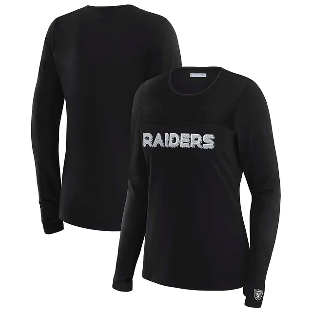 Women's WEAR by Erin Andrews x Gracie Hunt Black Las Vegas Raiders Mesh Panel Long Sleeve T-Shirt