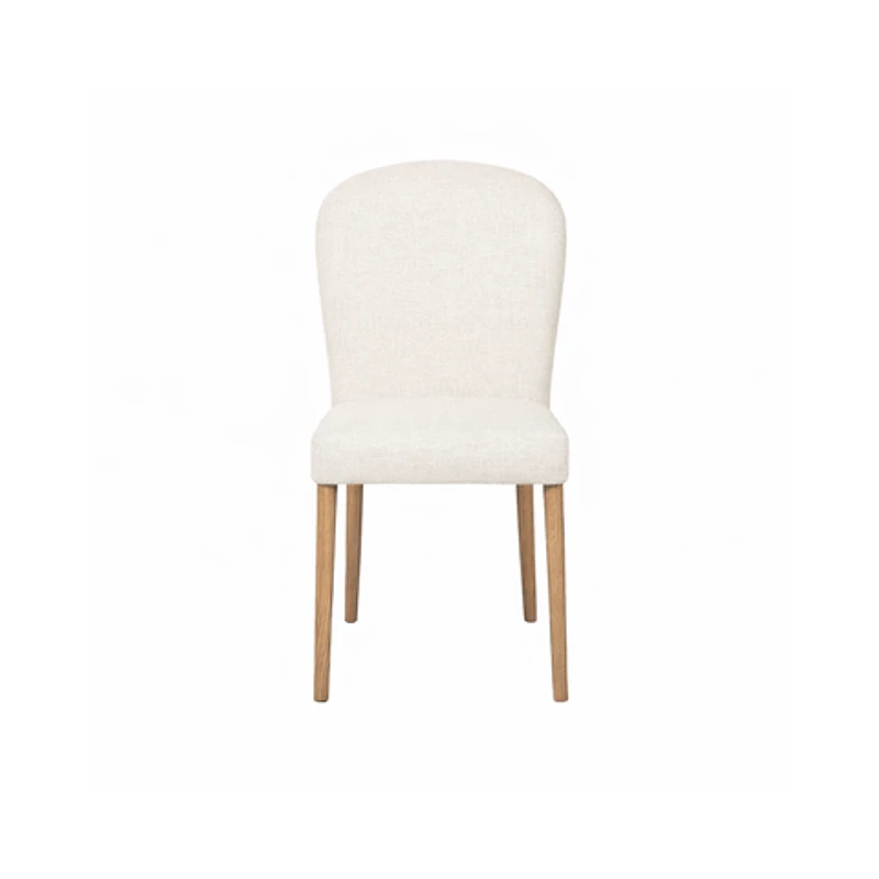 Introducing the Mid-Century Dining Chair, crafted from 100% polyester fabric and supported by a sturdy ash wood frame. This elegant chair features a nail head trim along the back, forming a graceful arc detail that enhances its appeal from every angle.