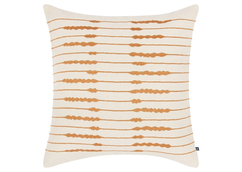 Our Zeb Cotton Pillow showcases a beautiful fabrication with delicate embroidery in rust. Zeb is crafted from 100% cotton and