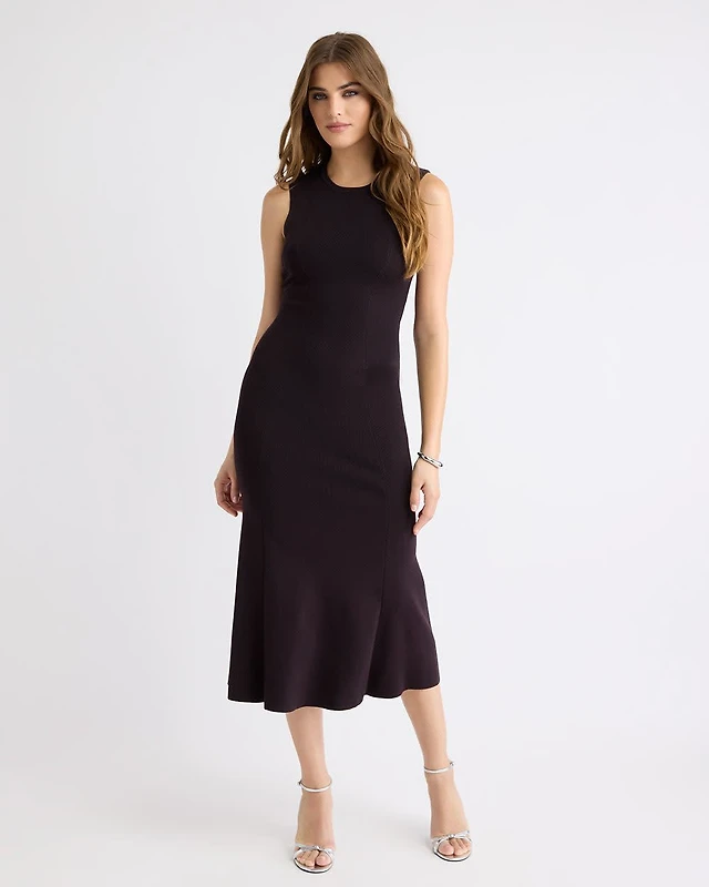 Sleeveless Crew-Neck Midi Dress with Cut-Out Details