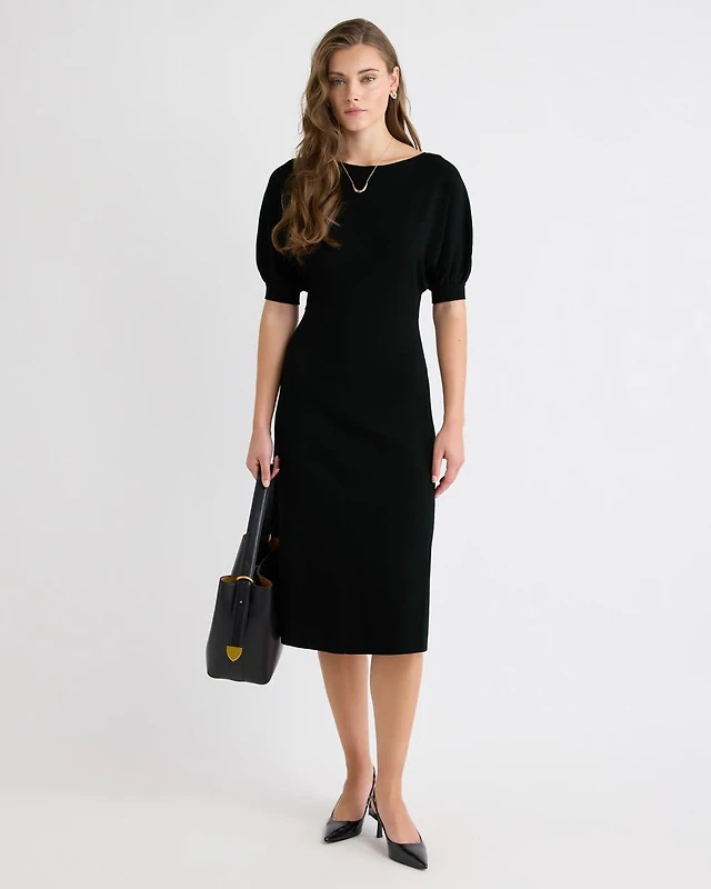 Wool-Blend High-Rise Long Tapered Pant with Elastic Waist