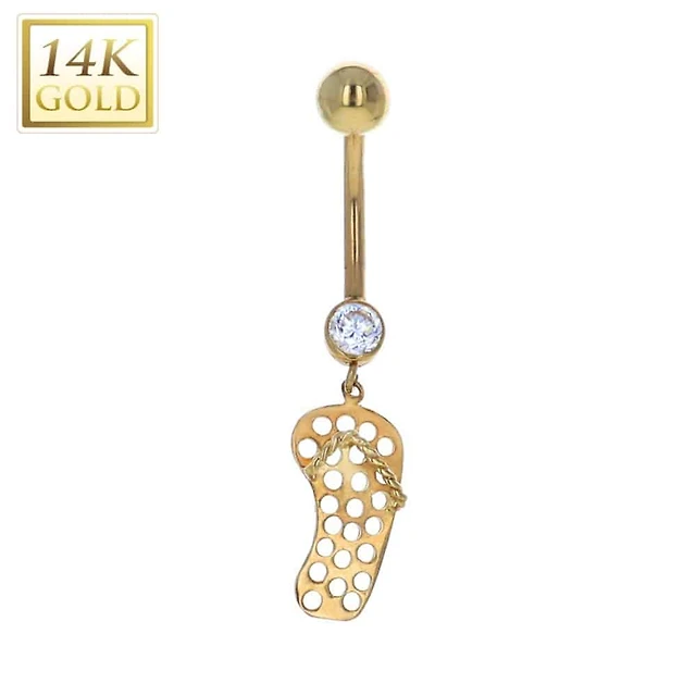 14K Gold Crystal Edge Heart Navel Barbell 14g