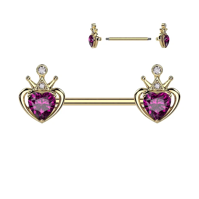 Luxury Royal Puff Crown Nipple Barbell 14g