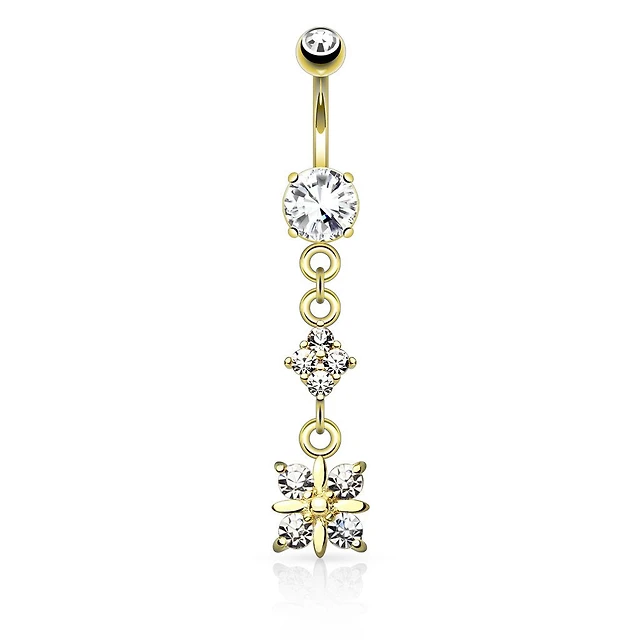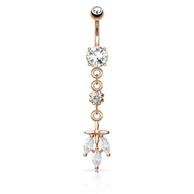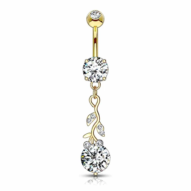 Premium G23 Titanium PVD Claw-Set Crystal Navel Barbell 14g