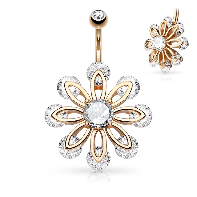 Crystal Tip Petal Navel Barbell 14g