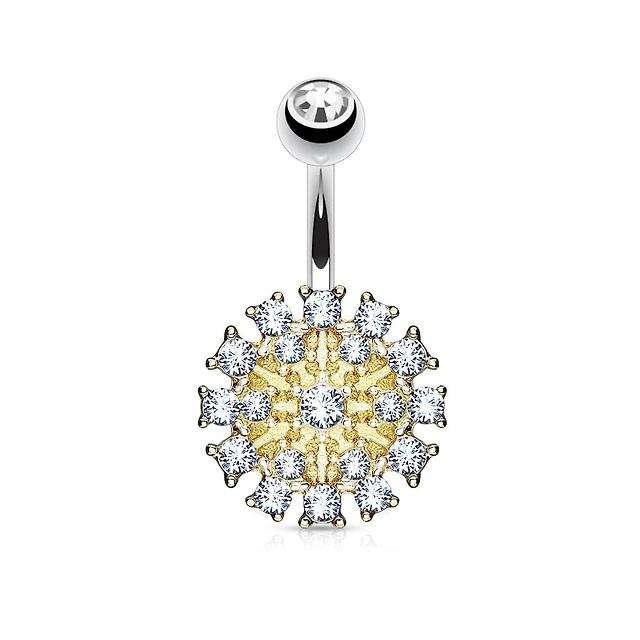 Crystal Cluster Shield Navel Barbell 14g