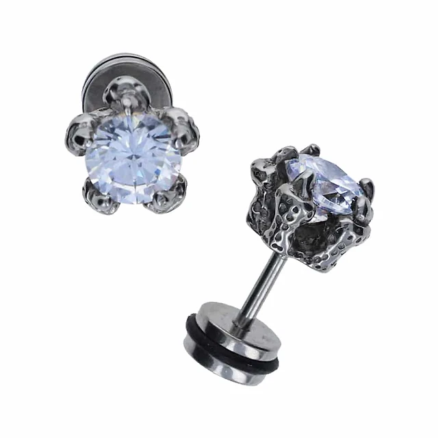 Claw-set Crystal Ends Fancy Industrial Barbell 14g