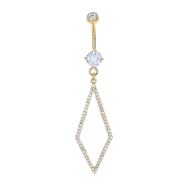 14K Gold Crystal Edge Heart Navel Barbell 14g